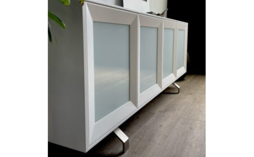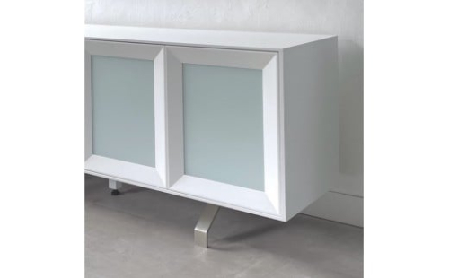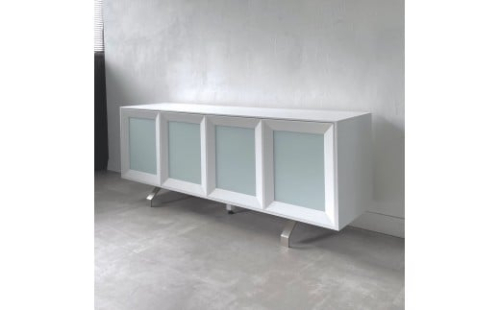 スクエア扉が光の陰影で美しく、立体感のある表情が印象的なサイドボード。
