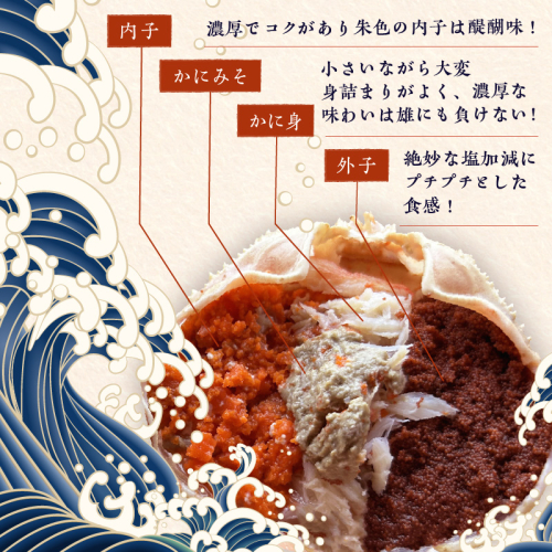 カニ身、カニ味噌・・・小さいながら大変身詰まりがよく、濃厚な味わいはオオズワイガニ雄にも負けない美味しさ!