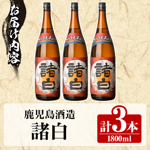 • 鹿児島酒造「諸白」(1800ml×3本) 国産 芋 白こうじ 本格焼酎 芋焼酎 お酒 アルコール 父の日 贈答用 ギフト 1升瓶 一升瓶 【鹿児島酒造】akn009-12