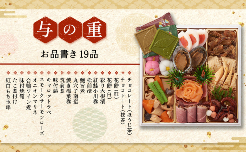 - 京都 和洋折衷 おせち 与段重(67品目 4~6人前) 冷凍【先行予約/毎年・早期受付終了品】12月29日か30日配送(日時指定不可)〈本物の抹茶・ほうじ茶チョコ入り ふるさと納税限定 冷凍おせち おせち料理〉