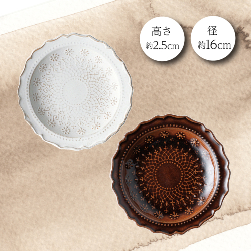 益子焼 レースケーキ皿ペア (BR・WH)|益子町 ふるさと納税 益子焼 ケーキ皿 ケーキ デザート サラダ ペア皿 ペアセット セット (DT003) 2218342 - 栃木県益子町