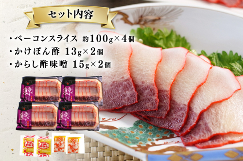 - AJ145 くじら ベーコン スライス 100g×4個セット 計400g [ くじら クジラ 鯨肉 湯引き 簡単調理 おつまみ 肴 珍味 小分け 日野商店 長崎県 島原市 ]