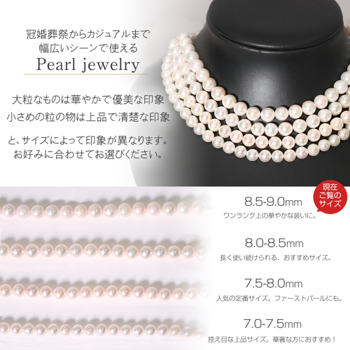 熟練した職人が選び抜いたこだわりの品質のあこや本真珠を使用しています。
