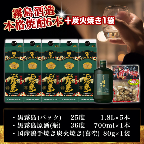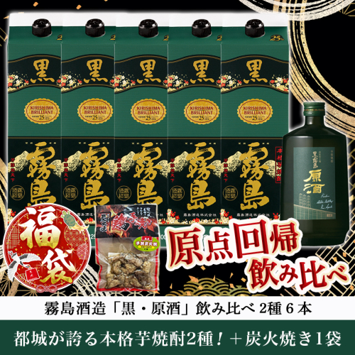- 【福袋★2026】霧島酒造「黒・原酒」飲み比べ2種6本「原点回帰」セット+炭火焼き1袋_33-6704-F2026