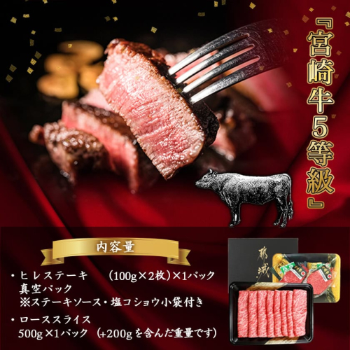 - 【福袋★2026】自分にご褒美!宮崎牛(A5)ヒレ&ロースセット+ローススライス200g_AE-0103-F2026