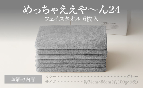 めっちゃええや~ん24 フェイスタオル 6枚 グレー【国産 吸水 普段使い 無地 シンプル 日用品 家族 ファミリー 普段使い】 099H4271 2220597 - 大阪府泉佐野市