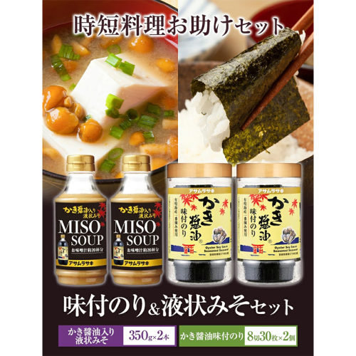 - 味付のり&液状みそセット かき醤油味付のり 8切30枚×2個 かき醤油入り液状みそ 350g×2個 詰め合わせ セット 株式会社アサムラサキ《30日以内に出荷予定(土日祝除く)》岡山県 笠岡市 送料無料 牡蠣 カキ 海苔 味付海苔