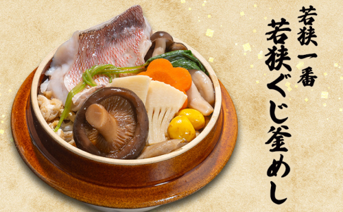 地元名産品を使った冷凍本格釜めし2種(若狭ぐじ、若狭牛すき焼き)。福井県の嶺南地域には御食国(みけつくに)や鯖街道(さばかいどう)など地魚にまつわる歴史が沢山あります。御食国とは、日本古代から平安時代まで、新鮮な海水産物などの食料を朝廷に献上する役割を担っていた国のことです。