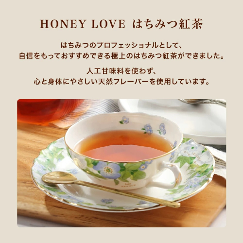 山田養蜂場自慢のアカシア蜂蜜に合うスリランカ産ウバ茶をブレンドした「HONEY LOVE はちみつ紅茶」と人気のスイーツ「はちみつバウム」をセットにしました。大切な方への贈り物におすすめです。