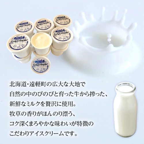 アイスクリーム 120ml×12個  原材料:遠軽町白滝指定牧場の牛乳、砂糖、脱脂粉乳、生クリーム 等