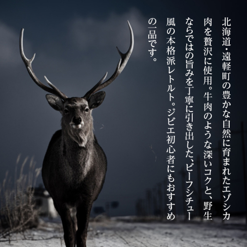 ベル食品遠軽工場で製造された「レトルトシチュー」は、北海道自主衛生管理の認証を受けたオホーツクジビエのエゾシカモモ肉を使用したシチューで、鹿肉の味わいが出たスープとなっています。ぜひ、ご賞味ください。