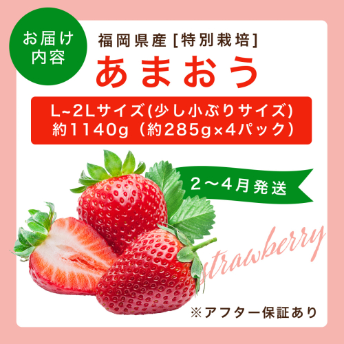 福岡県産 特別栽培 あまおう L~2Lサイズ(少し小ぶりサイズ)約1140g(約285g×4パック)【2~4月発送】 | 農園直送 アフター保証 先行予約 福岡産 送料無料 ケーキ ギフト お祝い 限定 季節限定 UN004