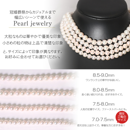 熟練した職人が選び抜いたこだわりの品質のあこや本真珠を使用しています。