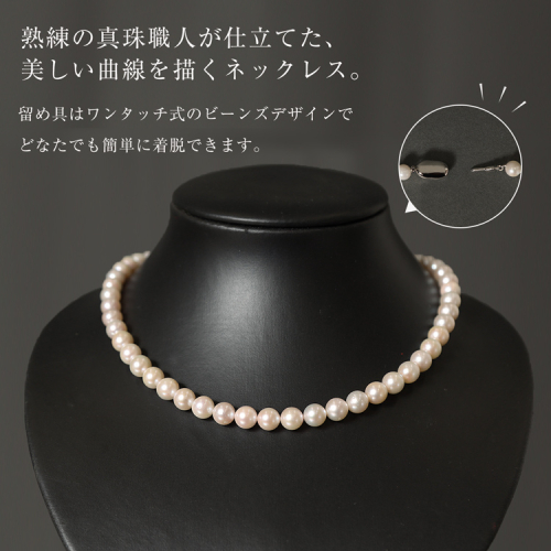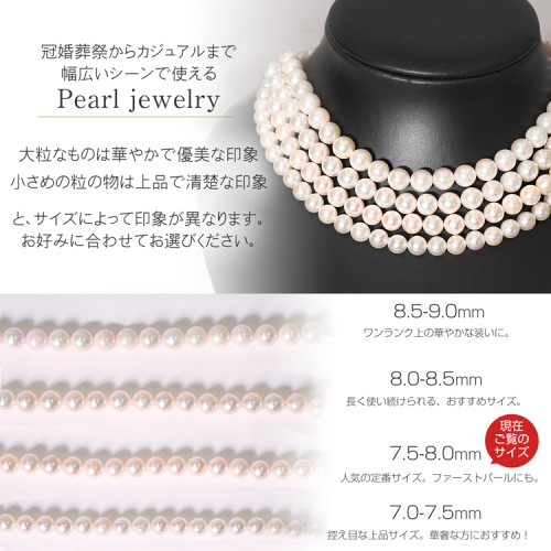 熟練した職人が選び抜いたこだわりの品質のあこや本真珠を使用しています。