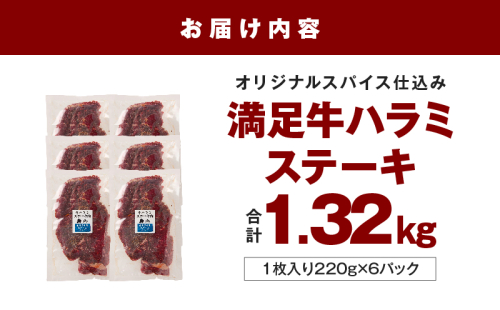 【満足牛ハラミステーキ】オリジナルスパイス仕込み 1枚220g×6P 合計1.32kg 【味付け ハラミ 小分け 焼くだけ 簡単調理 BBQ 牛肉 普段使い】 099H4187