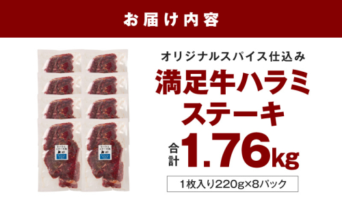 【満足牛ハラミステーキ】オリジナルスパイス仕込み 1枚220g×8P 合計1.76kg 【味付け ハラミ ステーキ 小分け 焼くだけ 簡単調理 BBQ 牛肉 普段使い】 099H4192