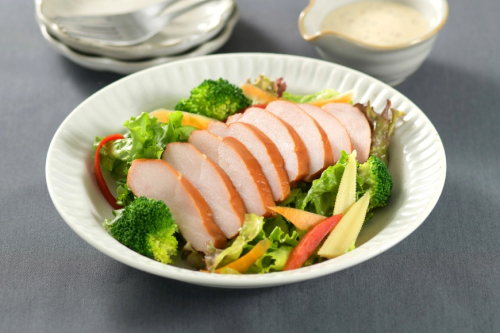 「雲仙しまばら鶏」のむね肉を使用したサラダチキンは、しっとりとした味わいが特徴です。