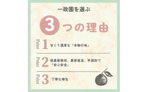 一政園は150年以上の歴史を持つ有田みかん農家として、5代目まで代々受け継がれてきた技術と愛情をもって、最高品質の柑橘を栽培しています、