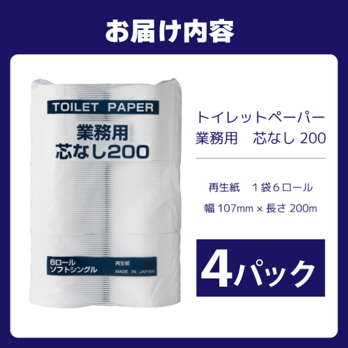 - 0010-104-01 太洋紙業 芯なしトイレットペーパー シングル4倍巻き24個200m 備蓄 防災 日用品 長巻き 再生紙100% 96ロール相当