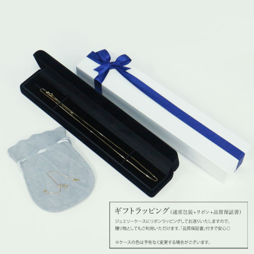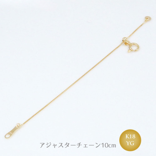 18金ゴールドのアジャスターチェーンで、コーディネートの幅を広げてお楽しみいただけます。
