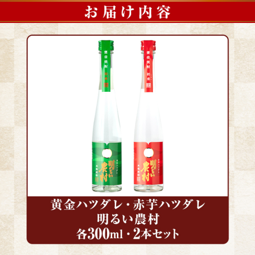 - K-592 黄金ハツダレ明るい農村・赤芋ハツダレ明るい農村(各300ml)【霧島町蒸留所】霧島市 飲み比べセット 焼酎 芋焼酎 本格芋焼酎 本格焼酎 酒 飲み比べ セット 宅飲み 家飲み