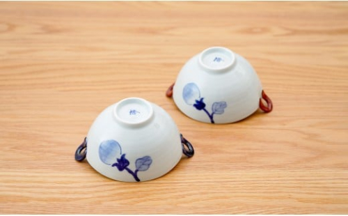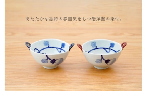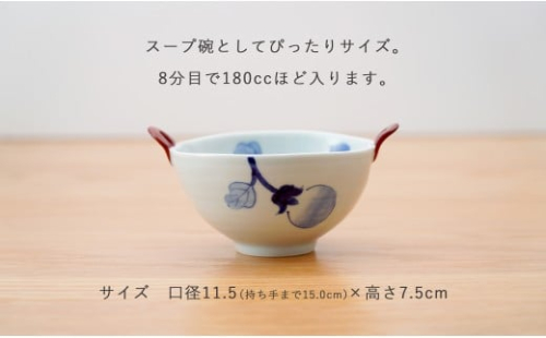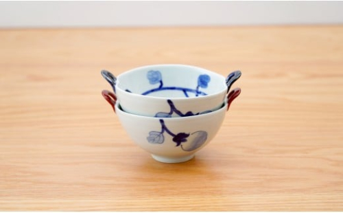 有田焼 皓洋窯 なす絵 耳付 スープ碗 2色 セット【藍土】食器 器 うつわ 小鉢 ボウル スープ碗 スープカップ なす 染付 ペアセット 30000円 3万円 A30-810