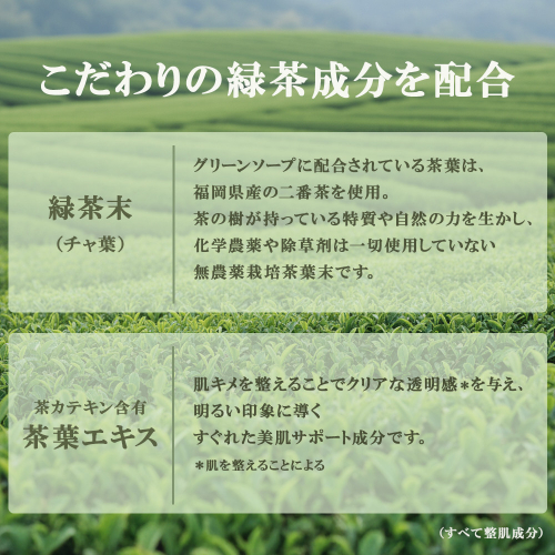 ◆もっちり濃密な泡で透明感*を引き出す緑茶石けん