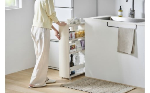 “幅18cm”以上の隙間があれば簡単に収納スペースが作れる、隙間収納ラック[ロータイプ]です。