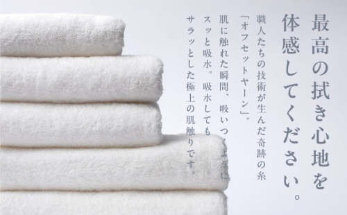 日々の暮らしを贅沢に。 “安心で心地良い毎日”のタオルを目指して「天然素材」と「吸水性」にこだわりました。15番手の太めのオリジナル糸・スーピマ使いのオフセットヤーンを使用。最高級ホテルで通用する贅沢感を備え、吸水性と上品な柔らかさを兼ね備えたラグジュアリーな逸品です。柔軟剤を使わなくても柔らかく、吸水性に優れた使い心地は、まるで吸いつくような新しい感覚のタオルに仕上がっています。 ■オフセットヤーンは実用新案第3153942号を取得。タオル製品において独占契約をしていますので、当社だけでしか味わえない使い心地です。 ■製造時、糸に強度を付けるために使う糊は安全な食用糊を使用しているので仕上がりまでには残らずきれいに洗い流されます。 ■製造時、仕上げの柔軟剤は使用していません。 ・泉州こだわりタオル認定製品 ・経済産業省 地域産業資源活用事業製品 原材料:綿100%、製造:泉佐野市