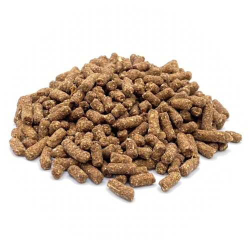 冷凍ミンチにして混合したもの、製粉機で微粉砕したもの、その他の成分を計量した後ミキサーで混合し、造粒、乾燥、検品計量梱包をする。
