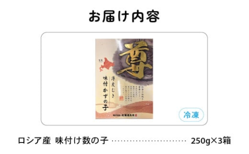 ロシア産 味付け数の子250g×3箱 お正月に欠かせない、幸福の1品 プチプチ弾ける、祝いの味わい 北海道 ごはんのお供 おかず 珍味 おせち 魚卵 R021-011