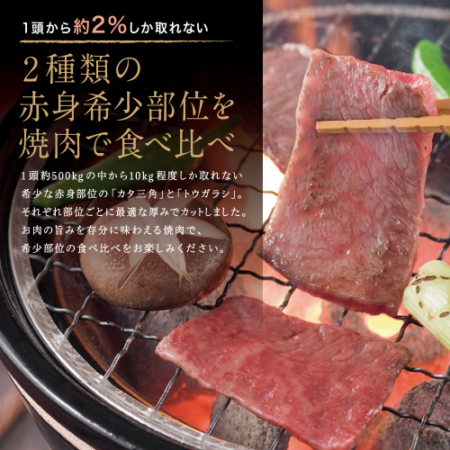 1頭約500kgの中から10kg程度しか取れない希少な赤身2部位を食べ比べセットにしてお届けします。