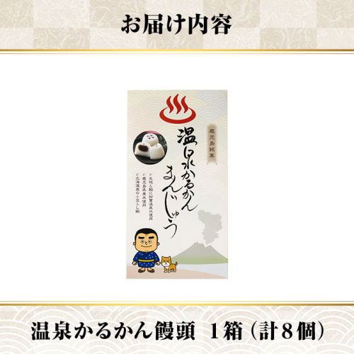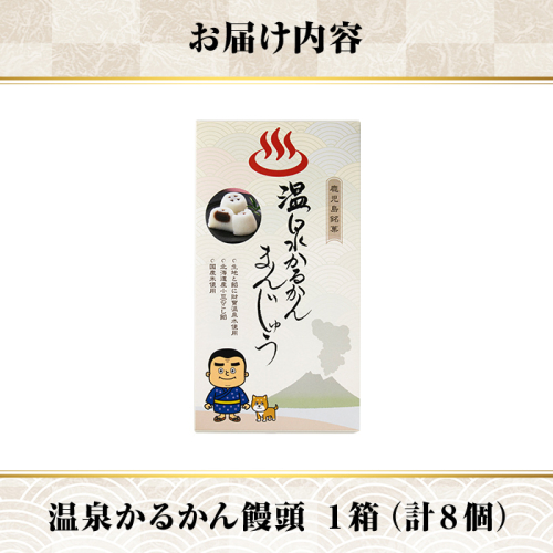 • K-593-A 温泉かるかんまんじゅう1箱8個入り(計8個) 【財宝】 霧島市 和菓子 個包装 ギフト かるかん 饅頭 まんじゅう お菓子 九州 銘菓 お土産 あんこ スイーツ おみやげ 贈り物 こし餡 温泉水使用 鹿児島県