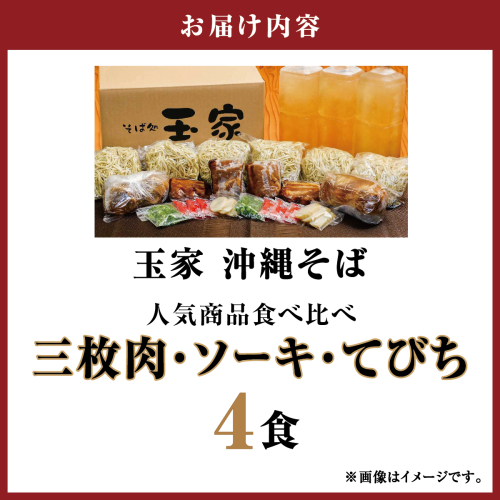 【そば処 玉家】人気商品食べ比べ4食セット I そば処玉家 人気商品食べ比べ 食べ比べ 4食セット 沖縄そば そば 沖縄グルメ そばセット 三枚肉 ソーキ てびち ギフト 4食 セット 沖縄県 南城市 ふるさと納税 そば処 玉家 南風原店