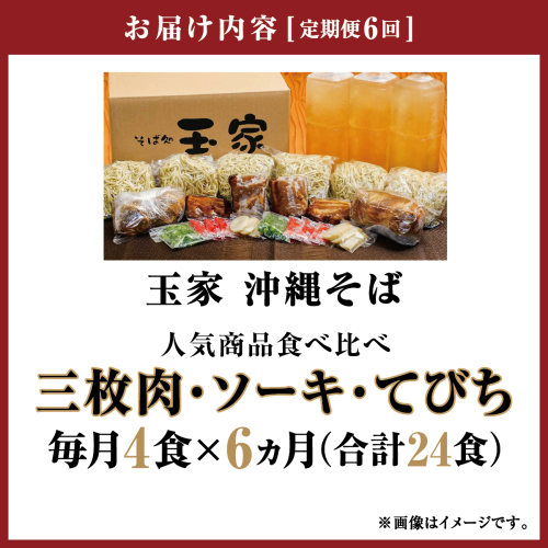 【そば処 玉家】人気商品食べ比べ 4食セット【定期便】毎月6回 I そば処玉家 人気商品食べ比べ 4食セット 定期便 毎月6回 沖縄そば そば 沖縄グルメ そばセット 三枚肉 ソーキ てびち ギフト 4食 セット 沖縄県 南城市 ふるさと納税