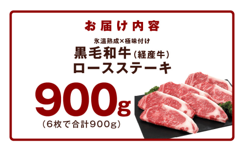 黒毛和牛 ロースステーキ 6枚 総量 900g【氷温熟成×極味付け 国産 牛肉 経産牛 すてーき 訳あり サイズ不揃い】 mrz0367