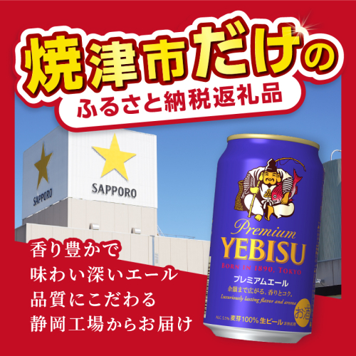 【説明】厳選されたホップと、吟味された酵母が醸す、余韻まで広がる濃密な香り、凛とした苦味、ふくよかなコク。今回新たに、エビスこだわりのドイツバイエルン産のアロマホップを香りが際立つ最適なタイミングで添加。2種類のホップによりエビスならではのエールらしい香りに進化した味わいを、自分だけのひと時にゆっくりとお楽しみください。静岡県焼津市にありますサッポロビール静岡工場より新鮮なビールをお届けします。