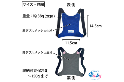 「アイスリュック ベビー」とは、暑さ・熱中症対策グッズとして開発された「アイスリュック」シリーズの小さなお子様向けアイテムです。