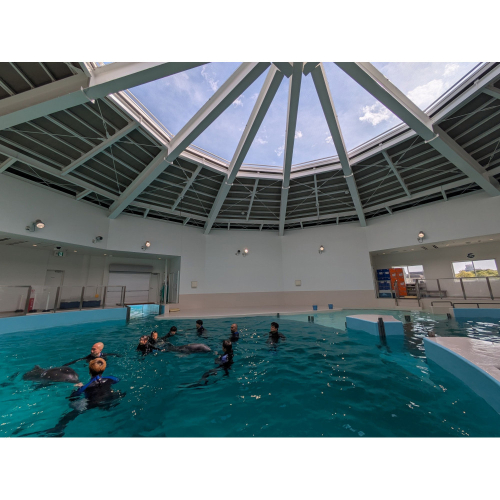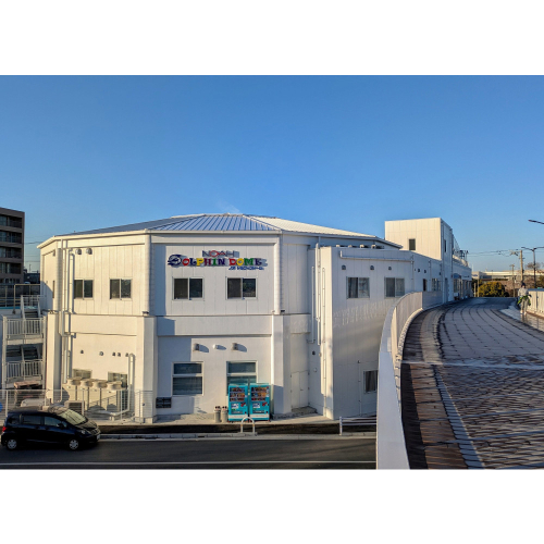 ノアドルフィンドームは南海堺駅から徒歩10分、堺旧港に位置する日本で唯一の半屋内型イルカ触れ合い施設です。