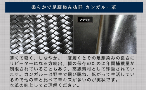 柔らかな高級カンガルー革を編み込み、足馴染み抜群。