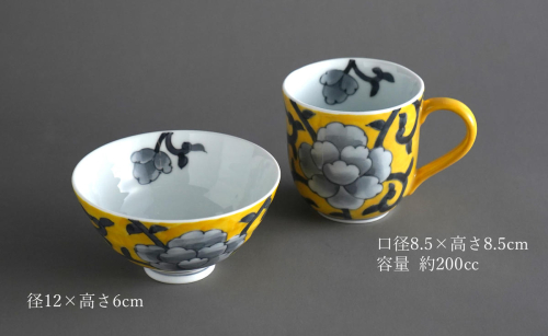 - 有田焼 ペットとお揃いの器 3点 セット 牡丹唐草(黄) 【泰山】猫・小型犬用フードボウル 丸マグカップ 飯碗 ペット 小型犬 食器 セット お揃い 犬 猫 茶碗 高級 ギフト 130000円 A130-36