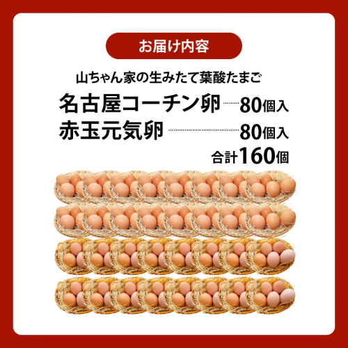 【山ちゃん家の生みたて葉酸たまご】名古屋コーチン卵・赤玉元気卵 食べ比べセット(各80個 合計160個入り)[132Y12]