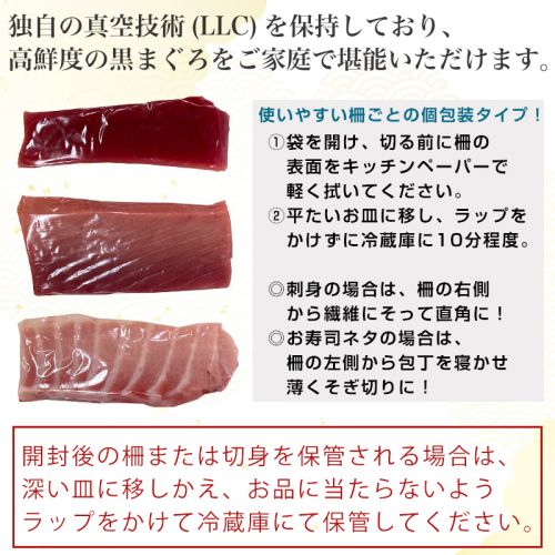 ご家庭ですぐに刺身にとれるよう、それぞれのパーツを柵形状で真空パックしております。