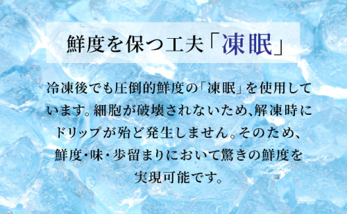 冷凍後でも圧倒的鮮度の「凍眠」を使用しています。
