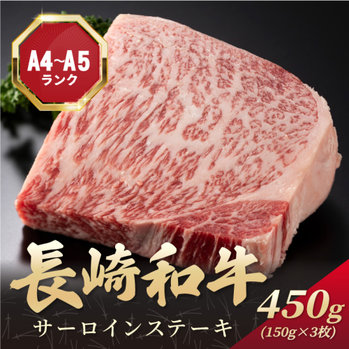 【A4~A5】長崎和牛サーロインステーキ 450g(150g×3枚)( 肉 牛肉 牛 長崎和牛 国産牛 サーロイン ステーキ ステーキ肉 お取り寄せ プレゼント ギフト 送料無料 )【B5-117】