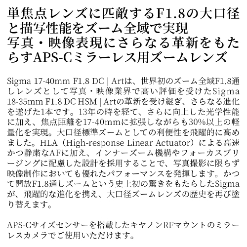 - SIGMA 17-40mm F1.8 DC | Art【キヤノンRFマウント】