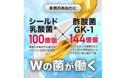 さらに健康力を維持する乳酸菌「シールド乳酸菌」を100億個(1粒あたり)配合。Wの菌のパワーであなたの健康をサポートします。