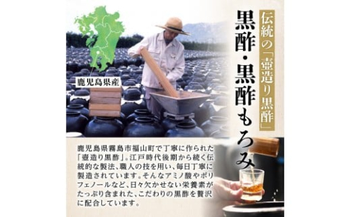 黒酢・黒酢もろみ酢は、鹿児島県霧島市福山町で丁寧に作られた「壺造り黒酢」。江戸時代後期から続く伝統製法、職人の技を用い、毎日丁寧に製造されています。そんなアミノ酸やポリフェノールなど、日々欠かせない栄養素がたっぷり含まれた、こだわりの黒酢を贅沢に配合しています。