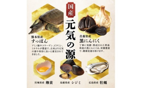 ・元気の源をこれでもかと配合。すっぽん、黒にんにく、シジミ等