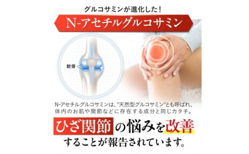 本品にはN-アセチルグルコサミンが含まれます。 N-アセチルグルコサミンは、歩行や階段の昇り降り時における、ひざ関節の悩みを改善することが報告されています。